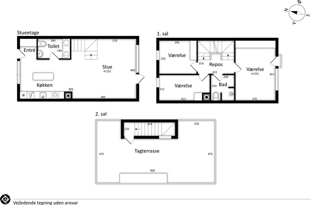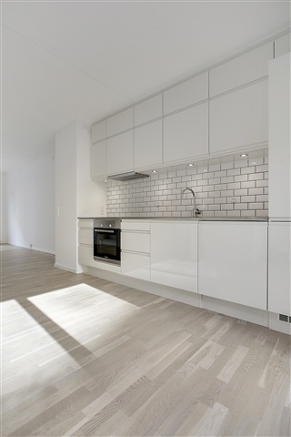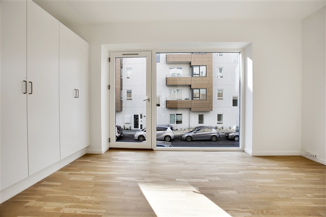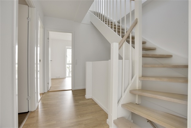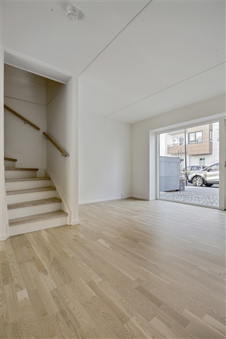 This charming and contemporary townhouse, spanning 106 square meters across three generously sized floors, features both a ground-level terrace and a private rooftop terrace on the second floor. Upon entering through the main door, you find a well-appointed entrance area. The rental includes one parking spot located on Krimsvej. The property also offers access to a playground and a waste disposal station on site.The ground floor contains a compact hallway that leads into the heart of the home's living space. The bright, open kitchen flows directly from the living room. This floor also houses one of the two bathrooms, combined with a utility room equipped with both a washing machine and a dryer.