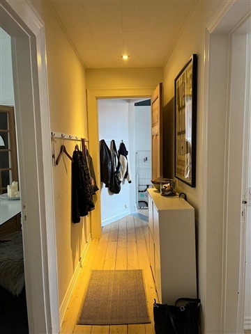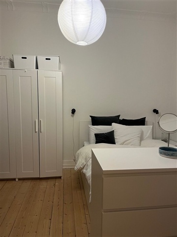 If you are searching for a residence within one of Esbjerg's most attractive and well-positioned buildings, this offer might be exactly what you need. The apartment available is a spacious 4-room unit encompassing 103 square meters, featuring a recently renovated and generously sized balcony. Situated on the raised ground floor of a four-story building on Norgesgade, this property enjoys a central location within walking distance to shopping, cafés, as well as bus and train stations. Pets are not permitted in the apartment.The interior is bright and welcoming, characterized by decorative ceiling moldings and high ceilings that enhance the sense of space. The dwelling comprises a light kitchen equipped with a dishwasher and a combined washer and dryer. There is a smaller room adjoining the kitchen, which provides direct access to the balcony. From the hallway, two large interconnected living rooms-with a French door dividing them-are accessible. Additionally, the hallway leads to the bathroom and another substantial, well-lit bedroom. Residents have access to a shared laundry drying room in the basement, as well as communal facilities including a bike shed and a garden. Electricity payments are settled directly with Norlys. The deposit required equals three months' rent. Furthermore, it is possible to rent a parking space in the courtyard for 350 DKK per month.