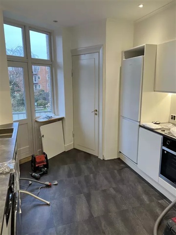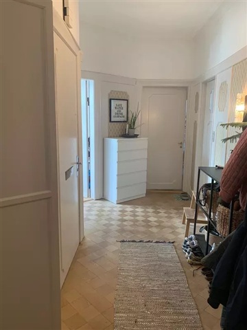 Situated in a charming red brick building on Finlandsgade, this apartment is found within a notably quiet neighborhood. The property boasts a stately appearance and is well maintained, featuring recently installed windows and impressive bay windows that enhance its character.This rental offers a spacious grand apartment with a distinctive layout, including unique flooring, wallpaper, and room arrangement. Inside, there are two bedrooms, two living rooms, a bathroom, and an additional guest toilet.