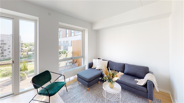 ERDAHUS offers rental homes crafted to meet a wide range of living preferences, all designed with a bright and Scandinavian aesthetic. The apartments vary from two to four rooms, providing flexible layouts suitable for different lifestyles. Whether you are a student seeking proximity to the university and city center, a young family looking for comfort alongside recreational spaces, or a senior prioritizing features like a balcony or terrace, convenient parking, and low maintenance, there is a home tailored to your specific requirements.Situated in Åbyen, these residences emphasize a harmonious connection between interior design and the surrounding environment. Each unit includes either a balcony or direct access to a terrace, allowing for ample natural light and pleasing views of the green areas extending towards Brabrandstien. The generously sized balconies, measuring between 5 and 6 square meters, blend seamlessly with the building's architecture and feature non-slip hardwood flooring. Ground-floor terraces start at 11 square meters, with some apartments boasting private rooftop terraces of up to 144 square meters. Those located on the ground level benefit from direct entry to paved terraces and a shared courtyard garden.