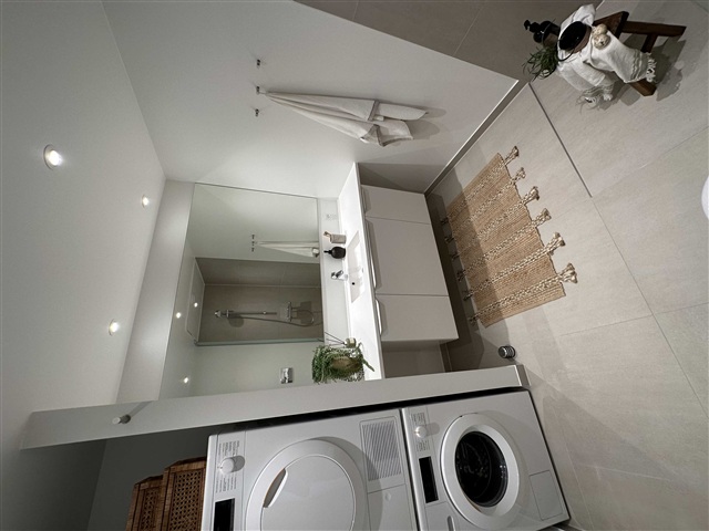 Located on the third floor, this well-designed residence harmoniously combines ample natural light, practical living, and a tranquil ambiance. The layout has been carefully considered to create a clear division between the communal areas and the private bedrooms. The kitchen and living area form the heart of the home, offering an open and welcoming space spacious enough to accommodate both a dining table and a lounge seating arrangement. Large windows flood the area with daylight, and from here, direct access leads to the balcony, effectively extending the living space and providing an inviting outdoor area for daily use.The apartment includes two generously sized bedrooms grouped in a quiet section, enhancing privacy and offering versatile use, whether as a master bedroom, children's room, or home office. The bathroom is designed with practicality in mind, featuring a separate shower enclosure and a stacked washer-dryer unit. Near the entryway, there is both closet space and a convenient storage room, adding valuable extra storage options.