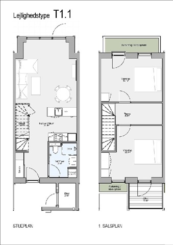 These contemporary and bright three-room townhouses span two levels, each featuring a private terrace and balcony, all situated within a tranquil oasis in central Årslev. The development emphasizes sustainability, community spirit, and architectural diversity. The facades are crafted from heat-treated wood, reinforcing the eco-friendly character of the property.Located south of Odense, the residences form part of the Future Suburb in Årslev, nestled in picturesque surroundings near the Vindinge River. Convenient access to shopping, educational institutions, and sports facilities adds to the appeal. Inside, the ground floor offers an entrance hall, a bathroom, and a spacious, naturally illuminated kitchen-living area with a bay window granting abundant daylight and direct access to a paved terrace. A staircase from this open-plan space leads to the first floor.