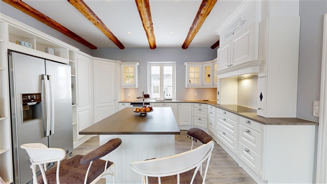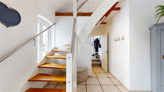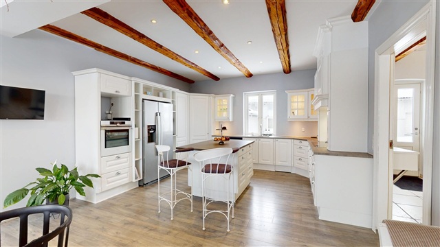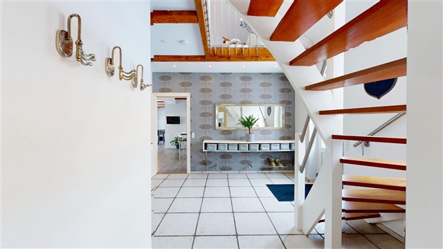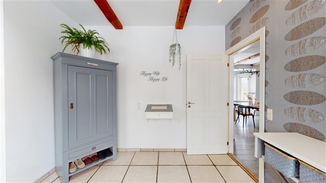This property offers over 200 square meters of living space presented in an exceptionally high standard, where quality, aesthetics, and practicality seamlessly merge. The house has been consistently maintained and is ready for immediate occupancy, featuring a sleek and cohesive interior design that creates a continuous flow throughout the entire residence.Upon arrival, the meticulous level of craftsmanship is immediately evident. The impressive entrance hall welcomes you with generous ceiling height and ample space, establishing an exclusive and airy ambiance. From here, you gain access to a well-planned utility room equipped with a tumble dryer and excellent storage solutions, all designed and executed with the same premium quality found throughout the home. Additionally, there is a stylish and modern guest toilet that feels both inviting and fresh.