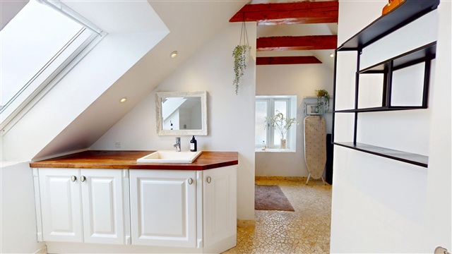 The first floor maintains the home's superior standard, hosting three generously sized bedrooms that are well-shaped for various furnishing options and benefit from pleasant natural light. This level also includes the main bathroom, designed with modern finishes, a shower enclosure, and a washing machine-combining stylishness with functionality to ensure comfort.