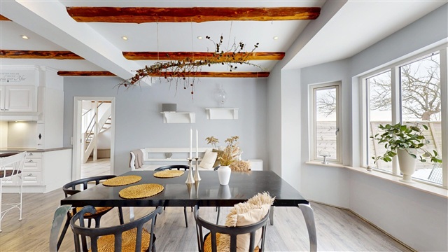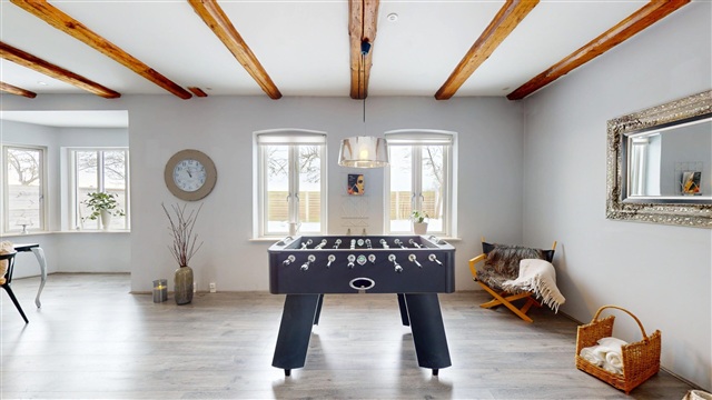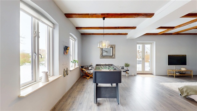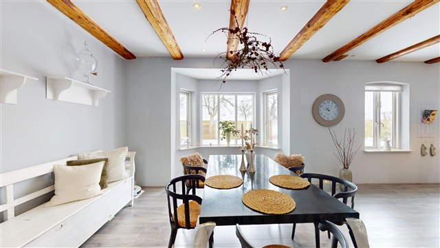 Situated in a quiet and picturesque environment, the property enjoys a natural backdrop that adds tranquility and openness to daily life. Despite this peaceful setting, it is conveniently located within easy reach of both Ringsted and Køge. These towns provide a wide range of shopping opportunities, schools, daycares, cafés, leisure activities, and excellent transport links, including straightforward access to the motorway network and train connections to Copenhagen.