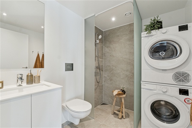 The apartments each feature either a balcony or a terrace and are designed using tasteful materials throughout. Spacious living areas are a key aspect of the layout, complemented by modern and sleek Invitakitchens, oak flooring, and ample natural light streaming in through large windows. Underfloor heating is installed in every unit, including the bathrooms, which come equipped with energy-efficient washing machines and dryers. Emphasis has been placed on practical storage options, with built-in closets available in all apartments as well as access to a private storage room within the residence. These well-planned homes in the area prioritize both functionality and comfort, making them well-suited for a lifestyle free from daily hassles. Additionally, the residences are arranged to accommodate all stages of life and are situated within peaceful and nature-rich surroundings.
