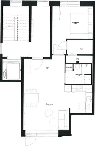 Spanning 68 square meters, this attractive rental comprises a spacious single room, a kitchen-living area, an entrance hall, a bathroom, a storage room, and a balcony. The interior features white, high-quality materials and large windows that enhance the naturally bright and welcoming atmosphere. Included with the apartment are built-in wardrobes and all major appliances, including a washing machine and dryer.Høje Haver is characterized by a horseshoe-shaped building structure with varying heights ranging from two to five floors, creating a dynamic and light architectural expression. The building's design reveals two distinct façades: the exterior sides showcase classic white elements that complement the surrounding architecture with understated simplicity, while the inward-facing walls towards the courtyard are adorned with warm, tactile wooden slats.