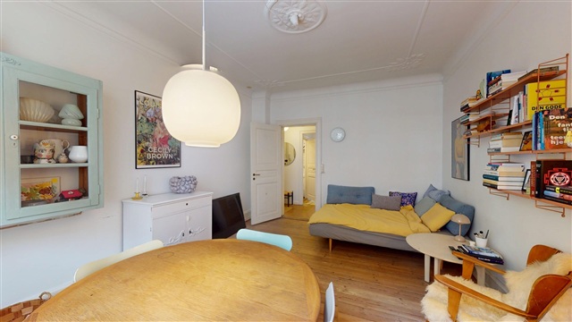 The location is particularly advantageous, placing you in the heart of Frederiksberg C with close proximity to the metro, train station, and bus routes, facilitating effortless travel throughout the city. Moreover, the area is conveniently near shops, schools, and kindergartens, making it an ideal setting for couples or small families. This property embodies a classic Frederiksberg apartment, combining a central position with a well-organized floor plan-an excellent choice for those who wish to live in the city center with everything within easy reach.