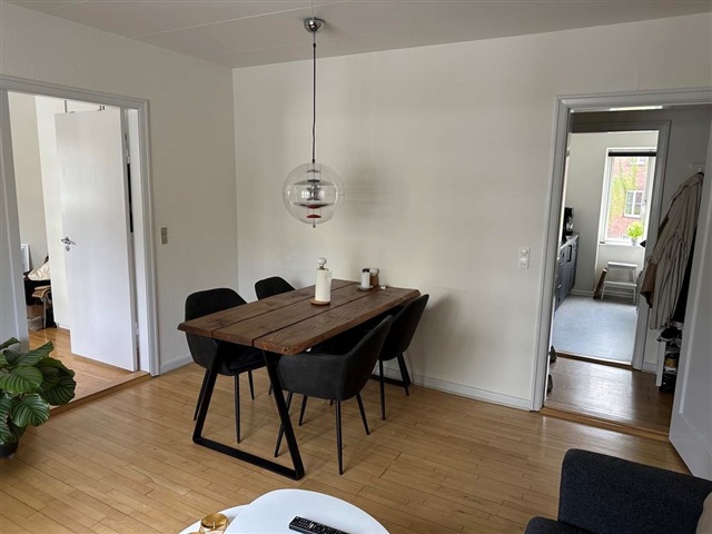 This inviting three-room apartment, ideal for sharing, offers a bright and spacious living area. The kitchen is designed with a sleek and contemporary style, fully equipped with a fridge/freezer, built-in oven, cooktop, extractor fan, and dishwasher. Both bedrooms provide ample natural light and generous space, allowing for flexible interior arrangements. The bathroom has a charming atmosphere and features a combination of a shower and bathtub.Within the building, residents have access to a shared laundry room, bicycle storage, and additional storage facilities. A pleasant courtyard area is available for communal use. The property is situated in Langenæs, conveniently close to the attractive Frederiksbjerg neighborhood, known for its cozy streets, numerous cafés, and abundant shopping options. Additionally, green spaces such as Langenæs Park and Frederiksbjerg Park are nearby.