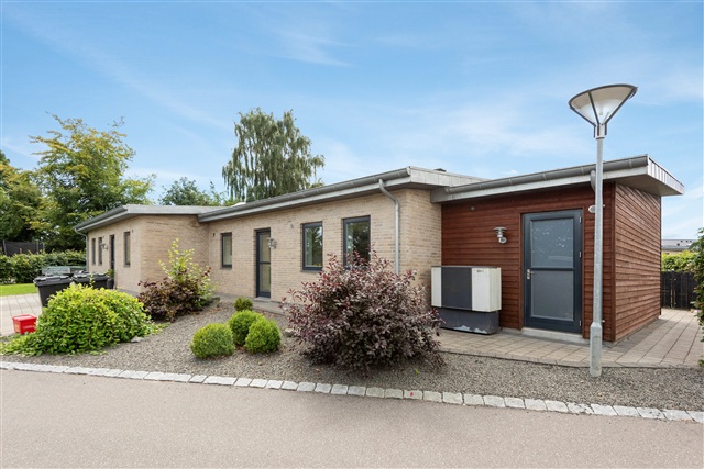 This development consists of 26 homes located on Hegnet in Lund, close to Horsens. Constructed in 2011, these semi-detached houses feature a yellow brick facade, a single-sloped roof covered with zinc, and wood/aluminum windows. Each property comes with an outdoor shed. The houses are fully brick-built and present themselves as neat and well-maintained. Positioned within a cul-de-sac, the area includes several pleasant grassy spaces adjacent to a small woodland and green open areas. The homes are equipped with air-to-water heat pumps, and the neighborhood benefits from a short distance to schools, shopping facilities, and the motorway.