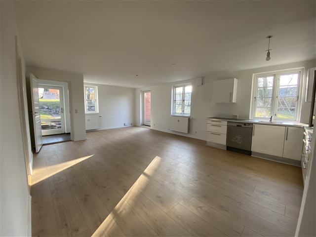This spacious and well-designed four-room apartment in Rødkærsbro offers direct access to a private garden. Situated in the charming, historic railway town, this residence presents a functional entrance hall alongside a dedicated laundry/utility room. The centerpiece of the home is a large, bright living area that seamlessly connects to a newly renovated, contemporary kitchen, fully equipped with all necessary appliances. From the living room, you can step directly into a cozy garden, providing a serene outdoor space to enjoy.The apartment also comprises three generously sized, versatile bedrooms and a pleasant bathroom. Located within easy walking distance to shopping and public transportation, the neighborhood includes a school offering education up to the 9th grade and an active sports club featuring football, gymnastics, and handball. Traveling by train from here to Viborg takes approximately ten minutes.