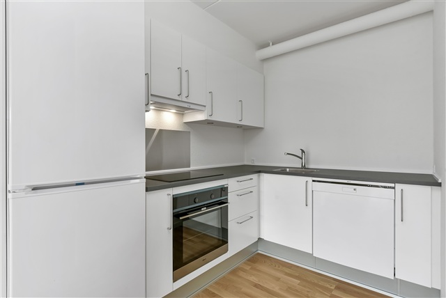 This two-room apartment is situated on the first floor and features a kitchen and bathroom fitted with white fixtures from Svane Køkkener. Included with the unit are several appliances: a refrigerator/freezer, oven, stovetop, extractor hood, and dishwasher. The bathroom provides space allocated for a washing machine. The floors are made of oak, adding a natural touch to the interior. Convenient parking options are available on the property itself. Positioned centrally in Lind, the residence is close to shopping facilities, schools, leisure activities, and public transportation, with Herning city center only 4 kilometers away. Additionally, the apartment includes a small storage room for extra convenience.