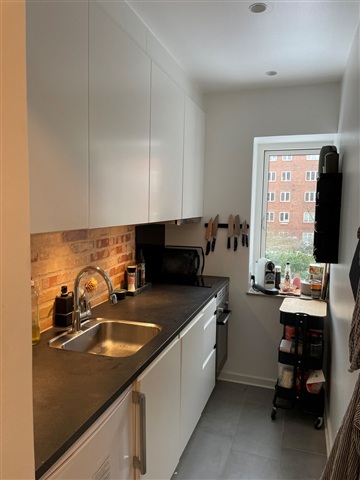 Residents of the property have access to a shared fitness room, equipped with around 10 to 11 different exercise machines. Additional amenities include storage options, a communal terrace, and access to a shared garden area. The apartment's location is both excellent and central in Aarhus, situated near Den Gamle By, BSS, and the Botanical Garden. Excellent shopping facilities are nearby, and public transportation as well as the city center are within walking distance.