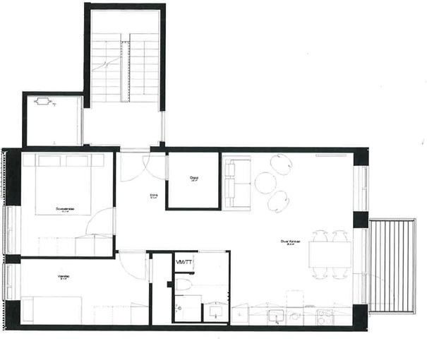 This charming rental property spans a total of 80 square meters, featuring two generously sized rooms, an open kitchen living area, an entryway, a bathroom, a storage room, and a balcony. The apartment has been finished with high-quality white materials and large windows, which enhance the natural brightness and welcoming atmosphere throughout. Included with the unit are built-in wardrobes as well as all major appliances, including a washing machine and dryer.Høje Haver is comprised of a horseshoe-shaped building that varies in height from two to five floors, offering a light and dynamic architectural expression. The structure presents two distinct identities: the exterior façades are clad with classic white elements, providing a clean and harmonious look that complements the surrounding buildings, while the courtyard-facing sides are adorned with warm and tactile wooden slats.