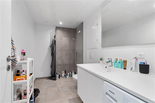 The apartments, designed by CEBRA architects, are constructed with a strong emphasis on quality. The kitchen is equipped with units from Svane Køkkenet, presenting a modern interpretation of the handle-free white kitchen. Details include extra-deep drawers featuring soft-close and full-extension mechanisms, a 20 mm countertop, and an undermounted black sink paired with a matching black faucet. Appliances are all supplied by Siemens, and an elevator provides direct access to the apartment entrance. Additional highlights include beautiful oak floors with underfloor heating, lovely balconies, and elegant bathrooms.