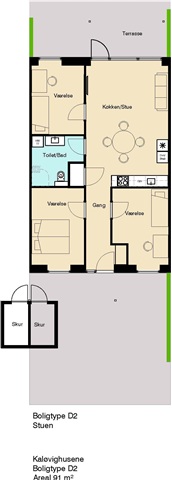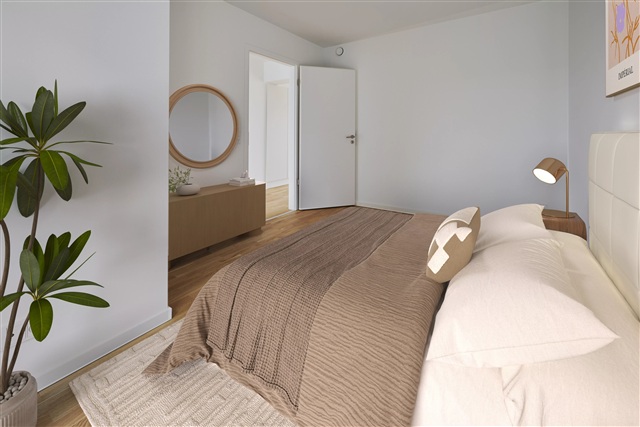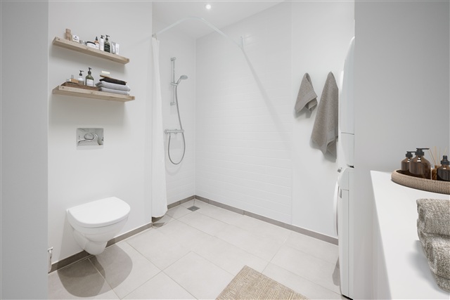 Located just a 20-minute drive from Aarhus city center, Kaløvigparken houses this lovely four-room apartment, ideal either for a small family or anyone seeking generous living space.The apartment makes excellent use of its entire floor area and features a spacious entrance hall designed to accommodate coats and shoes. The open-plan kitchen and living room blend seamlessly, creating a large communal area. From the living room, you can access a substantial terrace, perfect for outdoor enjoyment. The bathroom is equipped with ample cabinet space, a wall-mounted toilet, and a combined washer and dryer unit. Three generously sized bedrooms receive abundant natural light thanks to their large windows.