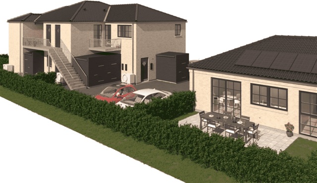Regarding the interior layout and features, the homes are equipped with kitchens and bathroom fixtures from Svane, appliances provided by Siemens, and a heat pump using air-to-water technology. For consistent comfort throughout every season, underfloor heating is installed across all rooms.