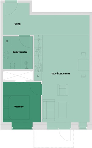 This apartment features two rooms and spans 74 square meters, blending practicality with a bright and welcoming environment. The open-plan kitchen and dining area serve as a central space for daily living, seamlessly integrating cooking and relaxing activities.Connected to this living area is a lovely balcony, extending the indoor space outdoors and offering an opportunity to bask in the sunlight. Additionally, the property includes a generously sized bedroom that completes the dwelling.