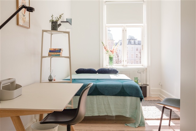 Situated in Frederiksberg, which is its own municipality adjacent to Copenhagen yet within the same region, this charming apartment resides on the second floor of a beautifully restored historic building dating back to 1872. The street where the apartment is found holds significant historical value, originating from the 1700s as the private route for the king leading to his summer residence, Frederiksberg Palace. In modern times, this street is well-known for hosting major events such as the pride parade, cycling races, half-marathons, and various royal celebrations.The apartment itself features a compact yet inviting layout that creates a warm and homely atmosphere. The kitchen is generously sized and includes an elevated dining table capable of seating approximately seven to eight people. The living room is spacious, designed to accommodate gatherings of numerous guests comfortably. Equipped with a large television, it offers an ideal setting for movie screenings or quiet, leisurely evenings. The four rooms differ in dimensions, with two positioned toward the street and the other two overlooking the courtyard, to which the apartment has direct access. Additionally, a basement area provides limited storage space allocated individually to residents.