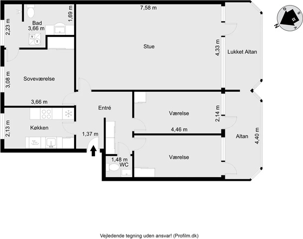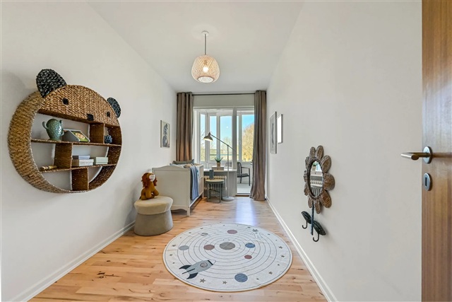 Situated on the third floor within the peaceful Holmparken area in Herning, this delightful four-room apartment offers a well-configured living space ideal for comfort and practicality. Upon entering, you will find a generous living room spacious enough to accommodate both a cozy seating arrangement and a dining table for social gatherings. The kitchen is bright and fully equipped, providing an excellent setting for preparing meals whether for everyday dining or entertaining guests.The residence comprises two nicely sized bedrooms alongside a master bedroom featuring direct access to the bathroom, allowing a balance of private and shared spaces. Additionally, the apartment includes an entrance hall and a guest toilet, enhancing convenience for families or couples seeking extra room and functionality.