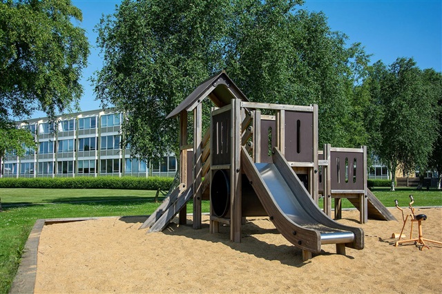 Enjoy the tranquility of two enclosed balconies that overlook the surrounding park, perfect for unwinding with a coffee or a glass of wine. Holmparken itself is renowned for its serene environment, abundant greenery, and playgrounds, making it an ideal neighborhood for families with children. Nearby amenities include good shopping options and schools, ensuring everyday needs are easily accessible.