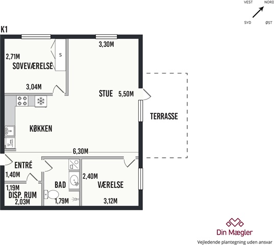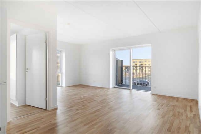 This bright and contemporary three-room apartment spans 77 square meters and features a well-planned, practical layout. It comprises two spacious bedrooms, a generous living room seamlessly connected to the kitchen, and a bathroom equipped with both a washing machine and a dryer. The kitchen includes a dishwasher, adding convenience to everyday living. The residence suits couples, small families, or those looking to share accommodations.Situated in a tranquil, green environment, the location offers a peaceful setting while maintaining close proximity to urban amenities. Aalborg's city center is accessible within a 15-minute bike ride, with shopping facilities, public transportation, and scenic natural areas all conveniently nearby.