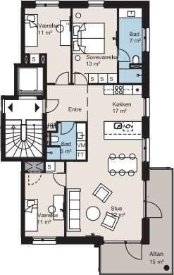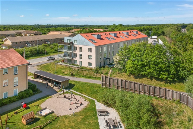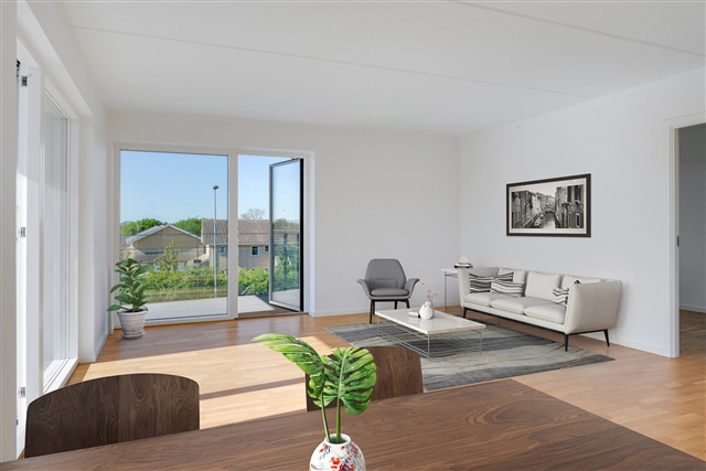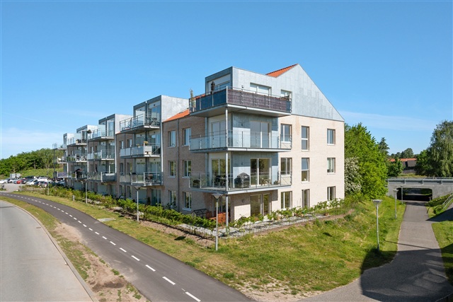 This corner apartment in the building offers a desirable opportunity to reside in one of the sought-after units. The living space consists of an open-plan kitchen and living room, which opens directly onto a charming corner balcony. The residence further includes three well-sized bedrooms and two bathrooms.Among the 32 apartments in Rytterhus, each is designed with an emphasis on spaciousness and aesthetic appeal, providing additional living space for everyday life along with the flexibility to personalize the interior easily. This home is crafted with attention to quality and features a timeless architectural style. The south-facing balconies or terraces allow you to enjoy the late summer sun throughout the day, while large windows invite ample natural light to fill the entire apartment.
