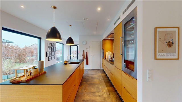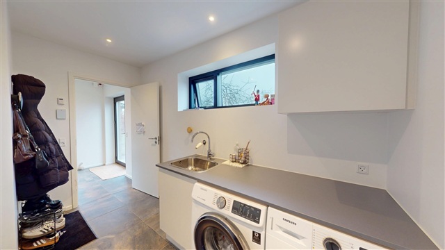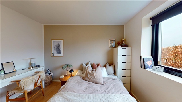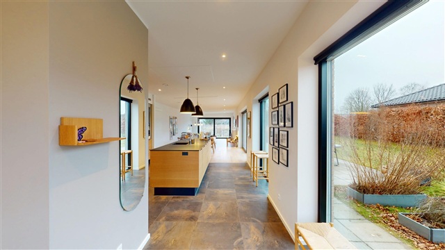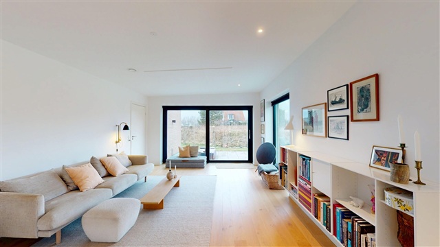 This spacious residence extends over 159 m² and is situated in a quiet, desirable neighborhood in Hillerød, offering convenient proximity to both natural surroundings and shopping facilities. It is available for immediate occupancy, fully furnished, and provides ample living space suitable for an entire family.The home features three well-sized bedrooms alongside two contemporary bathrooms, making it a practical choice for families with children as well as couples in need of extra room. At the center of the dwelling is an elegant wooden kitchen that seamlessly connects to the dining area, creating a bright and welcoming environment ideal for everyday living as well as entertaining guests. Upon entering, a large and light-filled foyer offers a pleasant initial impression and abundant storage options.