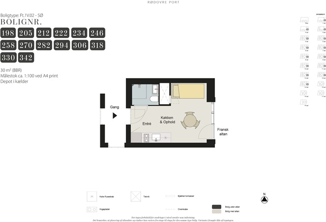 Situated within the newly developed and sought-after Rødovre Port area, this well-designed 30 m² studio apartment offers modern living with thoughtful details and an abundance of natural light. The residence features a combined living and kitchen space where the kitchen is outfitted in a timeless style, complete with essential appliances such as a microwave, stove, and fridge/freezer, making it perfectly suited for everyday cooking as well as hosting small gatherings.Large windows flood the interior with daylight, creating an airy and open ambiance. The layout provides enough space to accommodate a bed, dresser, and a cozy dining setup. Residents benefit from shared amenities including a laundry facility located on the second floor, a communal room with kitchen and restroom facilities in the basement, as well as both indoor and outdoor bicycle storage options. Additionally, a private storage room is included, alongside access to a communal rooftop terrace.