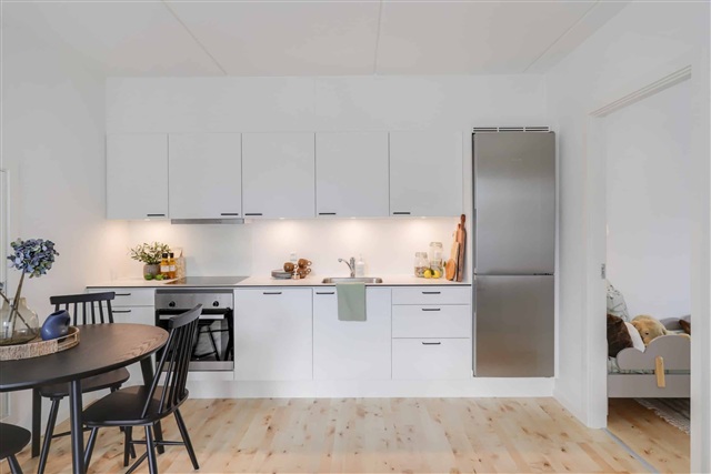 Just steps from the entrance, the charming pedestrian street of Rødovre Port provides convenient access to daily shopping needs with stores such as Spar and Normal, alongside eateries like Lagkagehuset and Pizza Hut, as well as services including a hairdresser and nail salon. At the end of this pedestrian area, Rødovre Station enables efficient travel to Copenhagen and surrounding regions. The location also affords proximity to green and scenic spaces perfect for walking or running outdoors. Moreover, major motorways are nearby, facilitating easy travel regardless of destination.