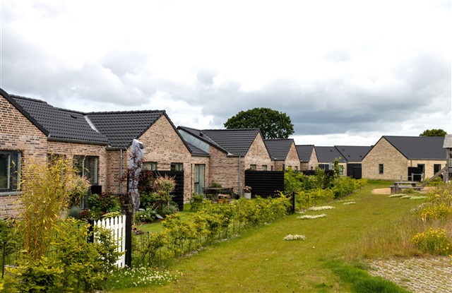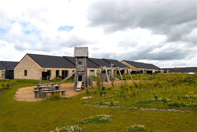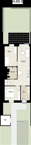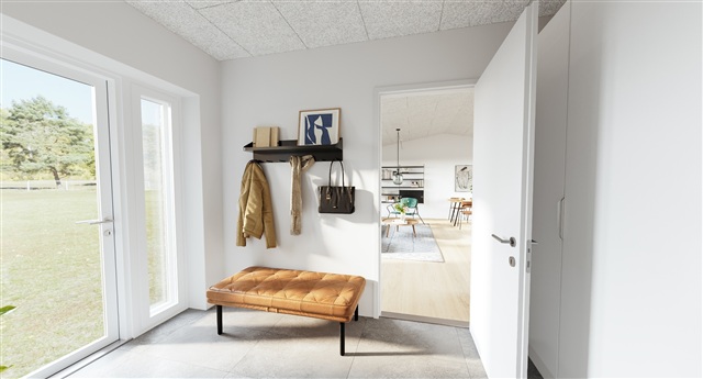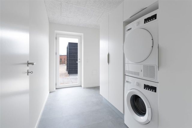 This charming three-room end-terrace house, spanning 71 square meters, is situated on Hirsevænget in Vonsild. The residence boasts a carefully considered layout that maximizes natural light throughout the home. Being an end unit, it benefits from added tranquility, increased privacy, and a generous sense of space surrounding the property.The heart of the house is the welcoming kitchen-dining area, designed as an open plan with the living room, creating a central space where cooking and socializing merge seamlessly. Large terrace doors in the living room lead out to a tiled patio and a cozy garden, offering a lovely extension of the living area during warmer months. The bedrooms provide flexible arrangements: the master bedroom faces the garden and is spacious enough to accommodate a double bed alongside three built-in wardrobes, providing ample storage. At the opposite end of the property is a second bedroom, suitable for use as a children's room, office, or guest space, which also includes a built-in closet. This layout naturally separates living and sleeping areas.