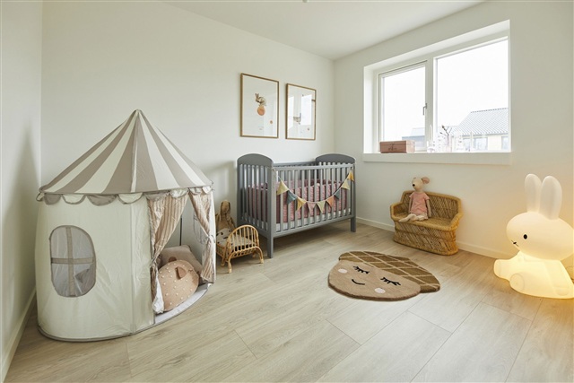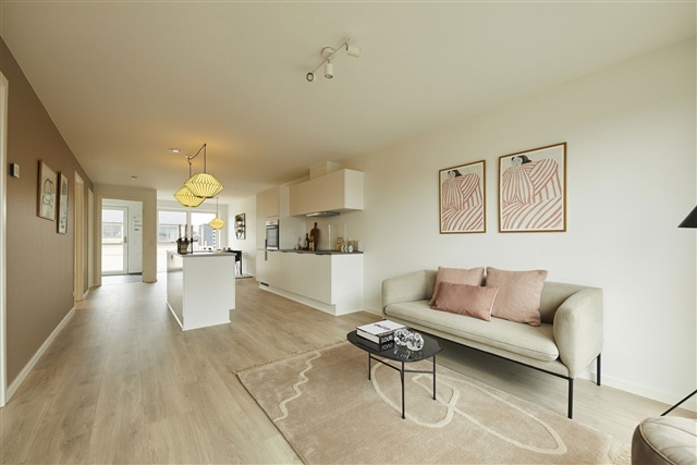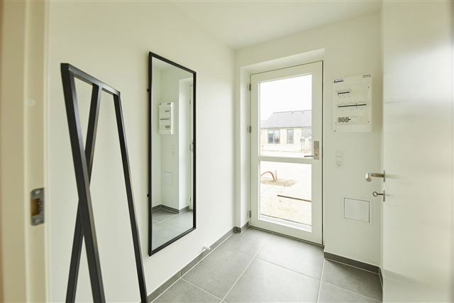 In summary, this 85 m² semi-detached home consists of two bedrooms plus an open-plan kitchen and living area, features underfloor heating and ventilation throughout, and enjoys a location in the sought-after Pigernes Kvarter neighborhood of Give, combining modern living comfort with private outdoor spaces and a secure setting.