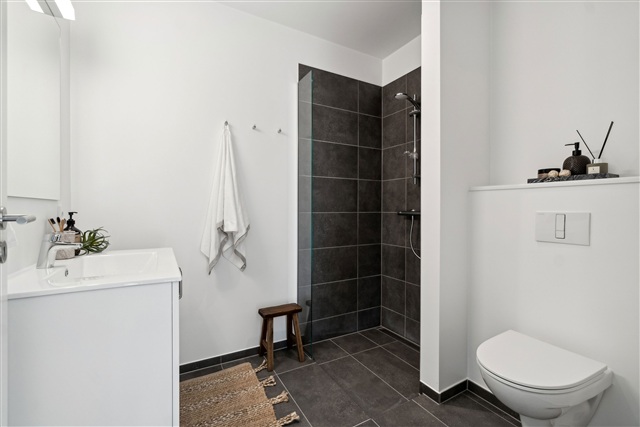 This well-designed and welcoming residence makes efficient use of every square meter. The home includes three rooms in total, featuring a spacious open-plan kitchen and living area that serves as the central gathering space. This layout provides ample room for daily living as well as for hosting cozy dinners with family and friends.The thoughtful floor plan presents a bright kitchen and living room filled with natural light streaming through large windows, which also create a seamless connection to the terrace and garden outside. Additional spaces consist of a generously sized bedroom equipped with built-in wardrobes, a versatile extra room ideal for children's bedrooms, a home office, or guest accommodations, and a bright bathroom that includes both a washing machine and dryer. A practical and light-filled entrance hall completes the interior.