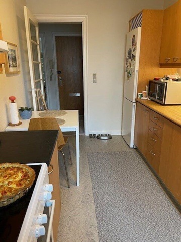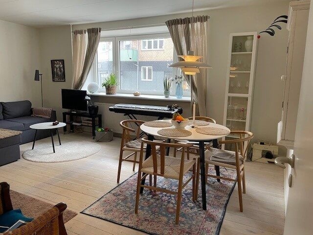 This apartment is situated just a five-minute walk from the heart of the city, offering an excellent blend of convenience and comfort. Featuring a contemporary design with elegant touches throughout, it serves as an ideal residence for students seeking a centrally located home.The layout comprises an entrance hall, living room, kitchen, bedroom, and bathroom. Residents have access to shared laundry facilities, including a washing machine and dryer, located in the basement, as well as a private paved courtyard. Monthly advance payments of 500 DKK cover heating, while 300 DKK per month is allocated for water; both are settled with the landlord once annually. Electricity costs are billed directly by the utility provider.