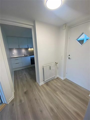 This recently refurbished two-room apartment spans 52 square meters and is situated in a highly desirable location within the heart of Fredericia. The rental is part of a larger building positioned centrally on Vendersgade.The layout includes an entrance hall, a spacious bathroom, one bedroom, a living room, and a kitchen. Additionally, tenants have access to a private fenced terrace along with a grassy outdoor area.