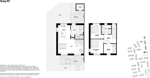 A contemporary, eco-friendly residence is now available for rent in the new Bakkekvarter neighborhood of Vinge. This home belongs to a development that prioritizes reducing environmental impact through thoughtful architectural design and careful selection of construction materials. Spread over two floors, the layout includes an entrance area featuring a combined washer-dryer tucked beneath the staircase, a guest toilet, an open kitchen equipped with a full range of built-in appliances adjacent to the dining area, and a bright living room with direct access to both a terrace and the surrounding garden. The garden itself wraps around the gable end of the house, extending along both sides of the property.Upstairs, the first floor offers a landing space, a bathroom, and three well-sized rooms that can be used flexibly as bedrooms, children's rooms, or workspaces. The dwelling also comes with its own shed, terrace, and gardens positioned on either side, enhancing outdoor opportunities. The area enjoys a desirable natural setting currently under development, with convenient proximity to public transportation and Frederikssund. Constructed using natural and biogenic materials, these terraced houses are designed with environmental consciousness in mind, aiming to maintain a low carbon footprint. Ongoing data collection and monitoring within the homes, along with feedback from residents, are part of an effort to improve future sustainable housing solutions. As a tenant, you are expected to be open to participating in this process and ideally to have an interest in environmental issues.