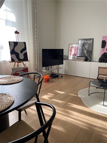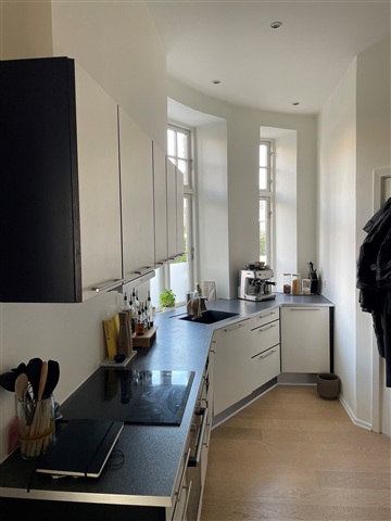 This apartment exudes charm, featuring high ceilings and an abundance of natural light throughout. It comprises a spacious and bright living room alongside a comfortable bedroom equipped with a large built-in wardrobe. The kitchen is outfitted with modern appliances, including a dishwasher, stove, extractor hood, and a combined fridge-freezer. The bathroom is generously sized and well-lit, complete with a separate shower area.Within the building, residents benefit from an elevator, communal laundry facilities, bicycle storage space, and additional storage options. Heating costs are paid as an advance, while water expenses are incorporated into the rent. The apartment is ideally situated in Aarhus C, just a short distance from the River, Mølleparken, and the cozy Vestergade area, known for its numerous cafes and restaurants. Public transportation is easily accessible, with the bus hub at Klostertorvet located only 400 meters away.