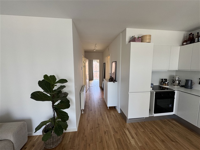 The property is centered around a spacious courtyard designed in a traditional Copenhagen block style. The building is set back slightly from the street and features facades constructed from handmade bricks in warm red hues that gradually lighten towards the sky, allowing natural daylight to filter into the courtyard. Within the courtyard, there are cozy seating areas, small playgrounds, and a public pathway running from east to west, distinguished by a unique surface treatment. The space is enhanced by trees and perennials of varying heights and colors, adding to its inviting atmosphere.Just a short stroll from the residence, you will find convenient access to the metro, shopping options, cafés, restaurants, Byparken, and Ørestads Streethal, which offers indoor sports, climbing facilities, play areas, and an outdoor fitness park. The Bellakvarter neighborhood hosts Bella Center Copenhagen, known for popular trade fairs such as design events and the annual LEGO World. Nearby stands the iconic AC Hotel Bella Sky, featuring a rooftop restaurant with impressive city views.