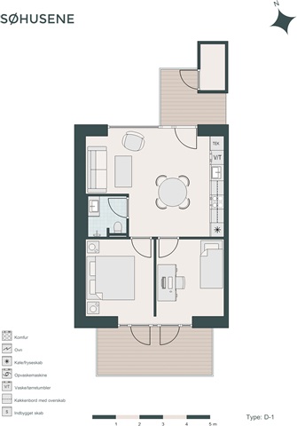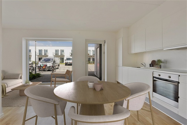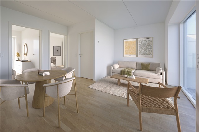 Located just 6.5 kilometers from Aarhus Central, Søhusene presents this charming 3-room apartment, ideally suited for those seeking additional space or couples planning to move in together.The design utilizes every square meter efficiently, featuring an open-plan kitchen and living area, a stylish bathroom with ample storage options, and two well-proportioned bedrooms. Both bedrooms provide access to a large terrace, enhancing the living space.
