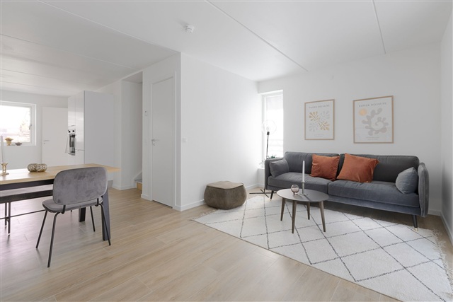 Outside, the property includes a terrace, a front yard, and a practical storage shed. A private parking space is also part of the residence. Constructed with high-quality materials emphasizing comfort, the home features underfloor heating throughout, oak laminate flooring, a ventilation system, and triple-glazed windows. One pet is permitted subject to agreement. Please note that all images and floor plans are indicative.