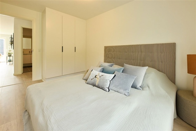 The residence comprises a bedroom fitted with built-in wardrobe walls and direct access to the terrace and garden. In addition, there are two supplementary rooms ideal for children's bedrooms, a home office, or guest quarters. The centrally located bathroom is designed with timeless materials and includes a shower niche and a wall-mounted toilet.