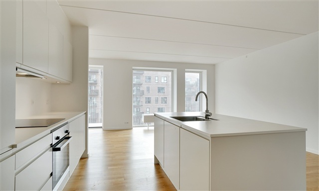 This five-room apartment is situated in Ørestad Have, offering spacious and contemporary living spaces in a central Ørestad location. The kitchen is equipped with modern appliances, including a dishwasher, while the bathroom features both a washing machine and a tumble dryer. The open and generous floor plan provides ample room for family activities, relaxation, and remote work.The building itself includes an elevator, bike parking facilities, and shared green areas. Parking spaces are available to rent, contributing to a secure and convenient lifestyle within this calm and well-maintained residential setting.