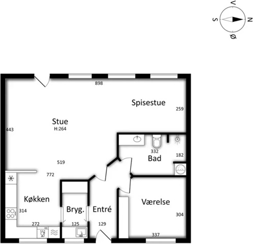 • Modern kitchen with new appliances in a semi-open connection to the living room