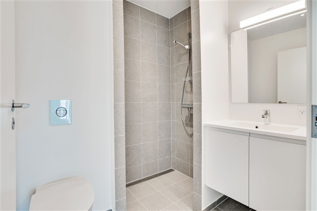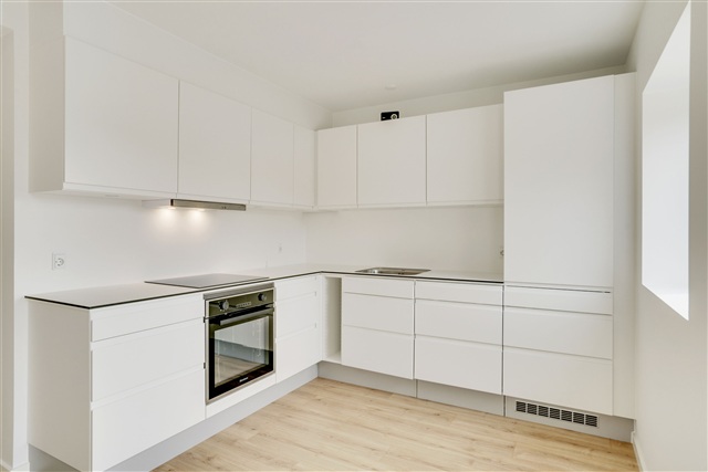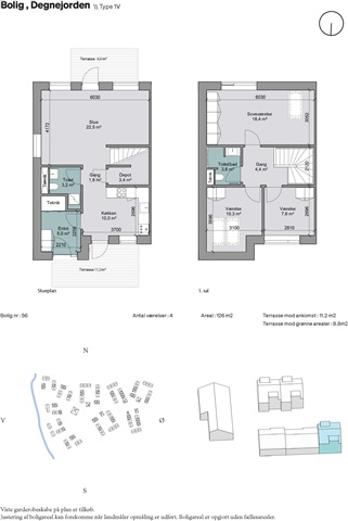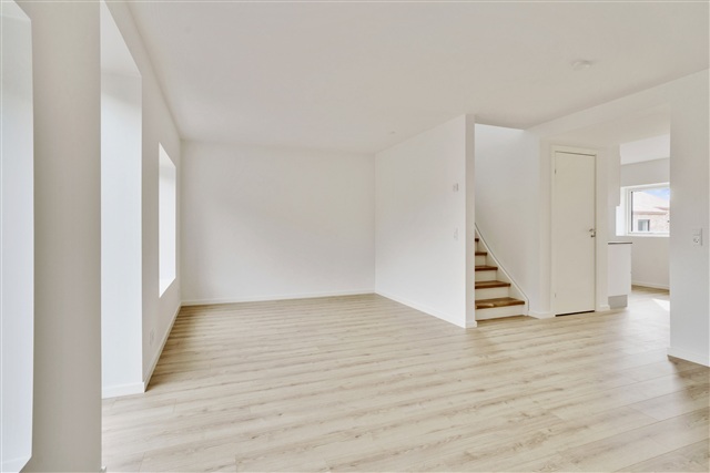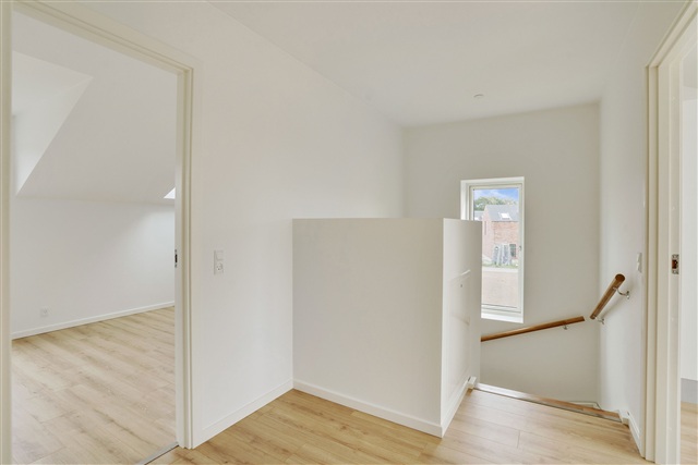 This contemporary terraced house is situated within LejreOmrådet, a modern village designed around community living. New constructions are rising in Lejre, where the space between housing clusters has been intentionally developed as a natural area. This green zone features a diverse array of trees and shrubs set among meadow grasses and herbs. Established paths run through the nature area, accompanied by smaller seating and activity spots.The development includes a total of 82 rental homes divided among three different housing types, available in one or two stories. In addition to these rental units, 13 houses are offered for private sale. Community infrastructure plans include the construction of one assembly hall and five communal houses. Parking arrangements provide 143 free-use spaces, including designated handicap spots. Electric vehicle users benefit from two charging stations that can accommodate the simultaneous charging of four cars.