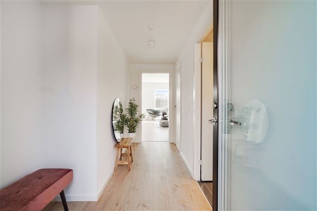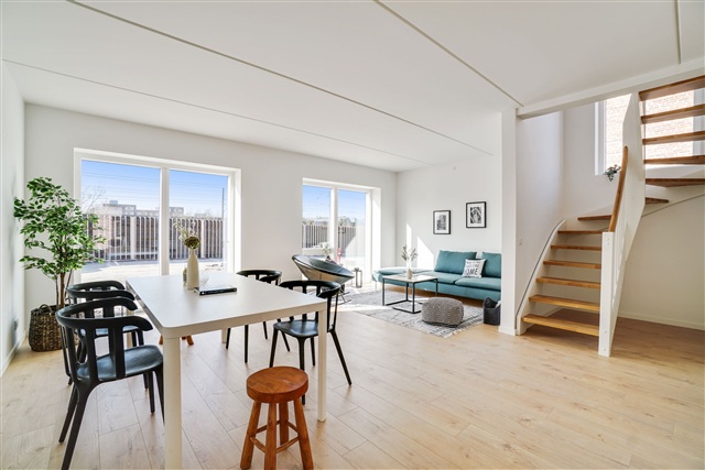 This newly constructed townhouse is situated in the heart of Albertslund, within walking distance of both the Albertslund Centre and the local train station. Spanning two levels, the residence offers a bright and contemporary living environment. Inside, you will find a living room seamlessly connected to an open-plan kitchen, four bedrooms, a utility room, and two bathrooms. Additionally, the property features a terrace on each side, providing outdoor space on both fronts.The convenient location ensures easy access to everyday necessities, smoothing daily routines considerably. Within approximately 850 meters, there are shopping facilities, childcare services, and public transportation options including S-train and bus lines. Several schools are also found in the vicinity. Furthermore, it's a short walk to the town's outdoor center, which hosts a variety of shops and dining establishments.