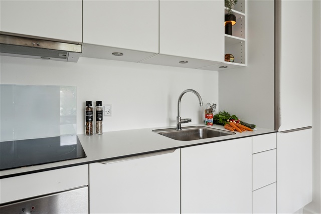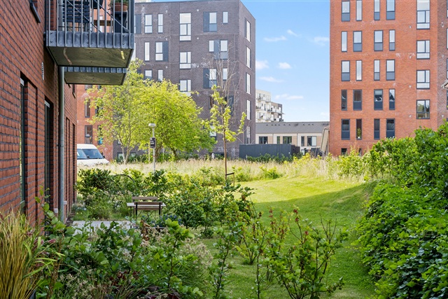 This charming two-room apartment features a private terrace directly accessible from a bright open-plan kitchen and living area. The kitchen boasts a contemporary design and comes fully equipped with a refrigerator/freezer, built-in oven, cooktop, extractor hood, and dishwasher. The bedroom offers generous space complemented by white cabinetry. The bathroom is modern and well-appointed, including a washing machine and a shower enclosure. Please note that the photos shown are from a comparable apartment within the same building.An additional storage room is associated with the apartment. Leasing a parking space in the underground garage is an option, while the property also provides secure bicycle parking. The surrounding area includes pleasant, green shared outdoor spaces. Positioned in the sought-after Vejlby-Risskov district, the residence is situated roughly 5 kilometers from Aarhus Central and within cycling distance to both Risskov Forest and Den Permanente. Several schools and childcare facilities can be reached on foot from the property, and shopping opportunities, including Vericenter located just 1 kilometer away, are easily accessible by bike or on foot.
