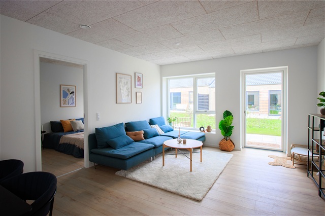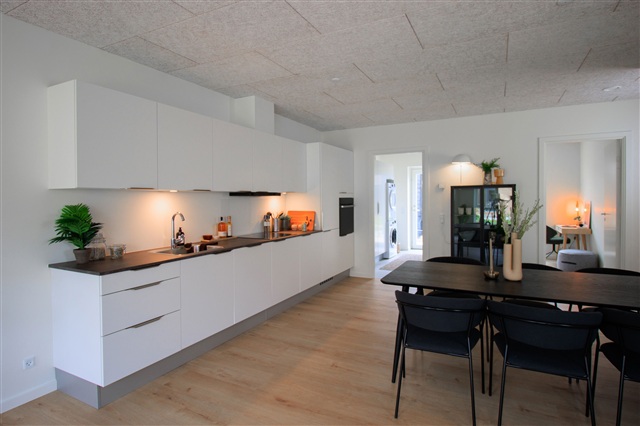 This charming terraced house offers a bright and welcoming atmosphere in the heart of the picturesque Astrid Lindgren neighborhood, conveniently close to daily amenities such as kindergartens, shopping options, public transport, and with easy access to the motorway. The home provides ample space for everyday living with a modern, open-plan kitchen and living area that merge seamlessly into a large, light-filled room. The kitchen features contemporary design, complete with high-quality appliances and generous work surfaces, making it ideal for both cooking and socializing. Large windows provide pleasant views, while direct access to the terrace allows for outdoor dining when weather permits.The residence includes a well-lit bedroom equipped with built-in wardrobes, accompanied by two additional rooms, each also fitted with closets, offering flexibility as children's rooms, a home office, or guest spaces. The bathroom is elegantly finished with modern materials and includes a shower niche, toilet, washbasin, and ample storage solutions, balancing style with functionality. An integrated entrance and utility area contain both a washing machine and dryer, facilitating household chores, along with dedicated space for storing coats and shoes.