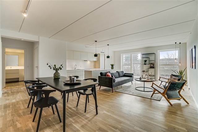 Situated in the heart of Kgs. Lyngby, the Kanalvejshusene neighborhood offers convenient walking access to Lyngby Main Street, Lyngby Storcenter, and Magasin, providing a variety of shopping and retail options. Directly opposite the building lies expansive green spaces, inviting outdoor activities and play.