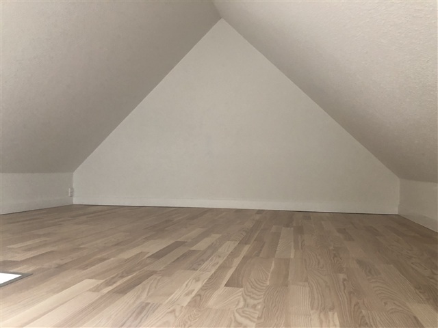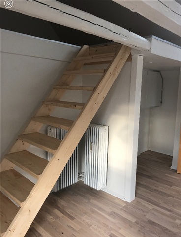 This recently renovated and charming three-room penthouse apartment is situated in the heart of Grindsted's town center. Upon entering, you find an open-concept kitchen and living area featuring vaulted ceilings and skylights that provide ample natural light. The sleek white Vida-Kvik kitchen is fully equipped with modern appliances, including a refrigerator-freezer, built-in oven, ceramic cooktop, and dishwasher. The living space offers an interesting layout with dormer windows facing the square and a staircase leading up to an open mezzanine.The apartment includes a clean, white bathroom, a bedroom, and an additional room. A private washer and dryer are installed within the unit for convenience.