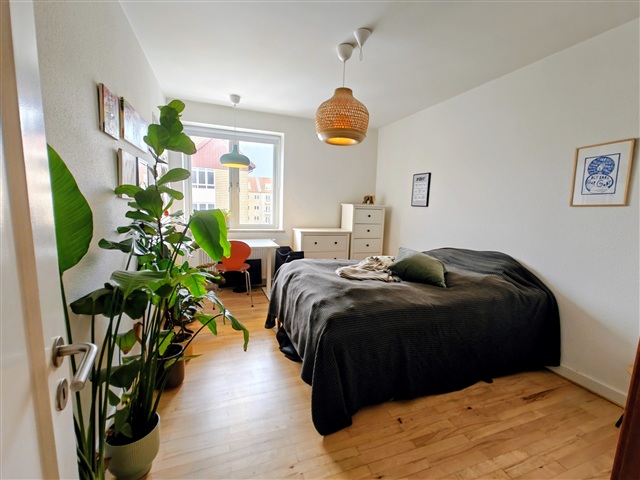 This apartment, well-suited for shared living, features a bright and spacious living room along with two charming bedrooms. The separate kitchen comes fully equipped with a refrigerator/freezer, stove, extractor hood, and dishwasher, complemented by ample cabinet space. The bathroom includes a shower area, and a practical hallway connects all rooms, enhancing its suitability for multiple occupants.In the basement, tenants have access to a communal laundry room, bicycle storage, and additional storage facilities. Furthermore, a pleasant courtyard area is available for shared use. The property is situated in a verdant neighborhood close to Aarhus University and shopping options, with convenient public transportation including both the light rail and bus stops just around the corner.